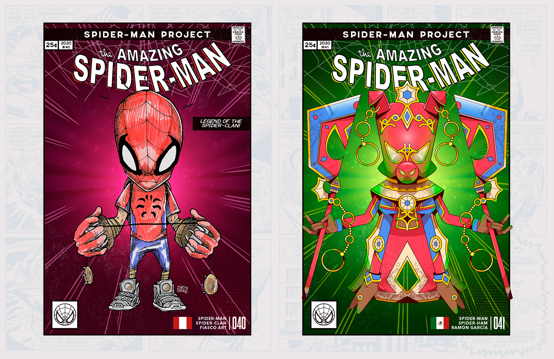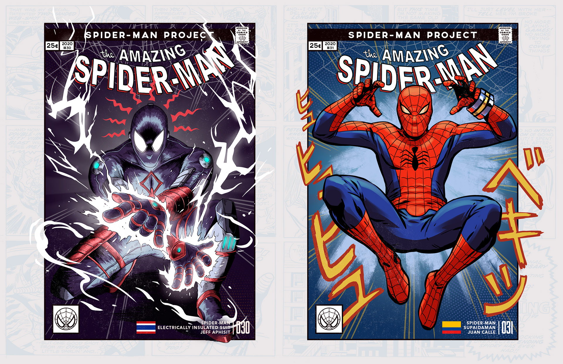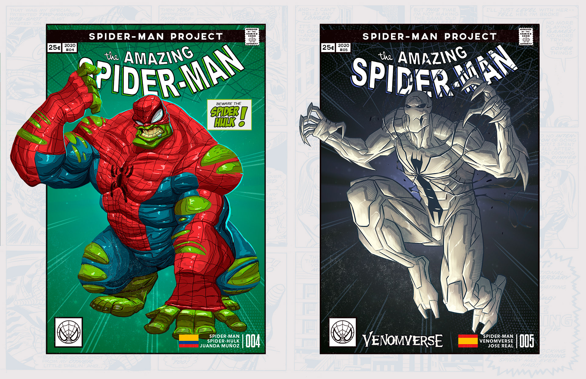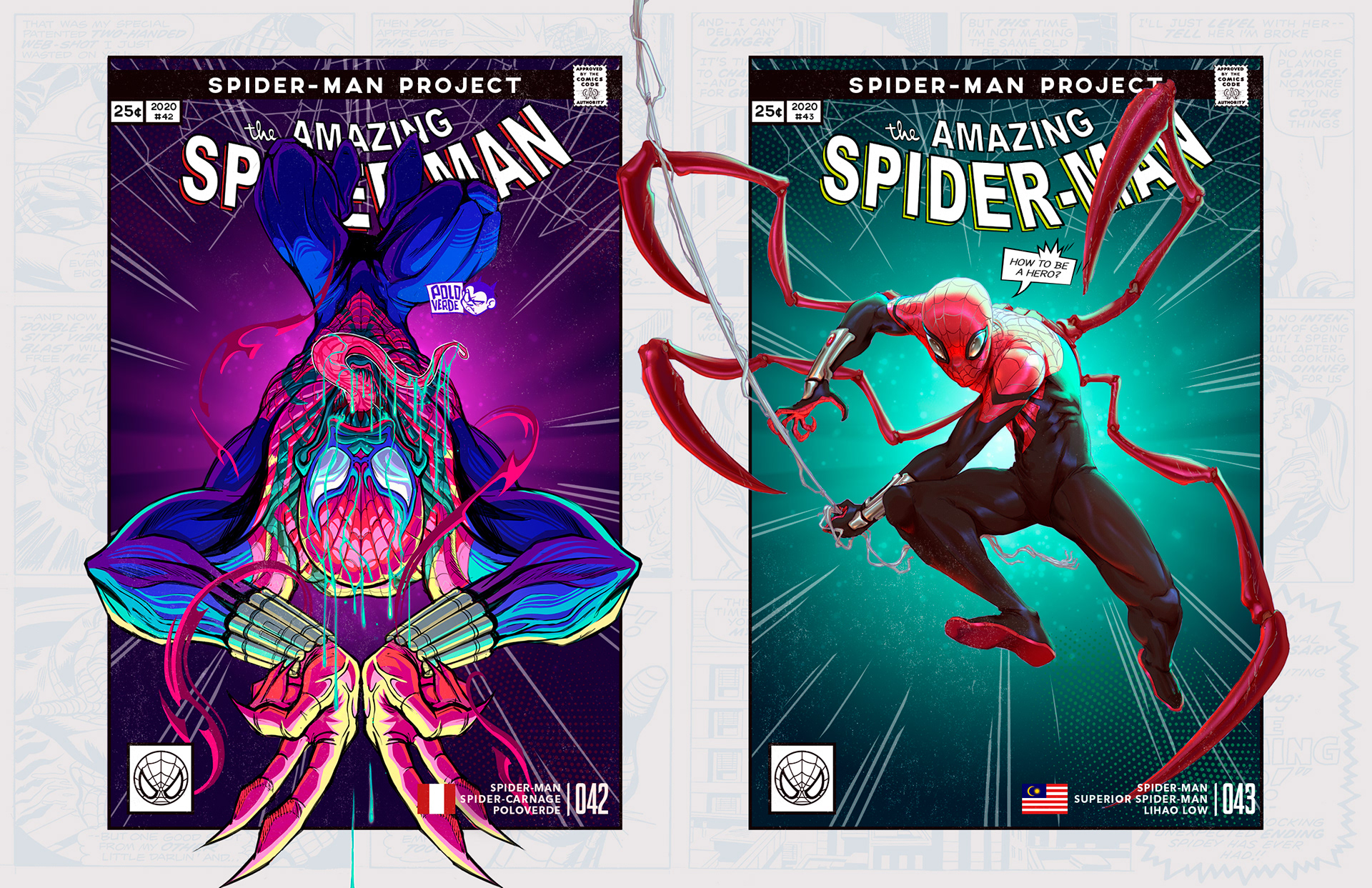 Spider-man is undoubtedly one of the most successful characters in Marvel's long list of superheroes. To celebrate his 58th anniversary and his upcoming 850th comic, I decided to bring together 46 illustrators from 11 countries to create a collaborative project with different versions of his friend and neighbor Spider-Man over the years. Enjoy! -------------------------------------------------------------------------------------- Spider-man es, sin duda, uno de los personajes más exitosos de toda la larga lista de superhéroes que tiene Marvel. Para celebrar su aniversario #58 y su próximo cómic #850, decidí juntar a 46 ilustradores de 11 países para crear un proyecto colaborativo con las diferentes versiones de su amigo y vecino Spider-Man a través de los años. ¡Disfruten! Jhony.