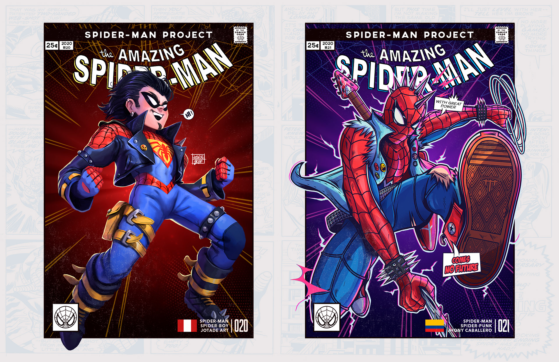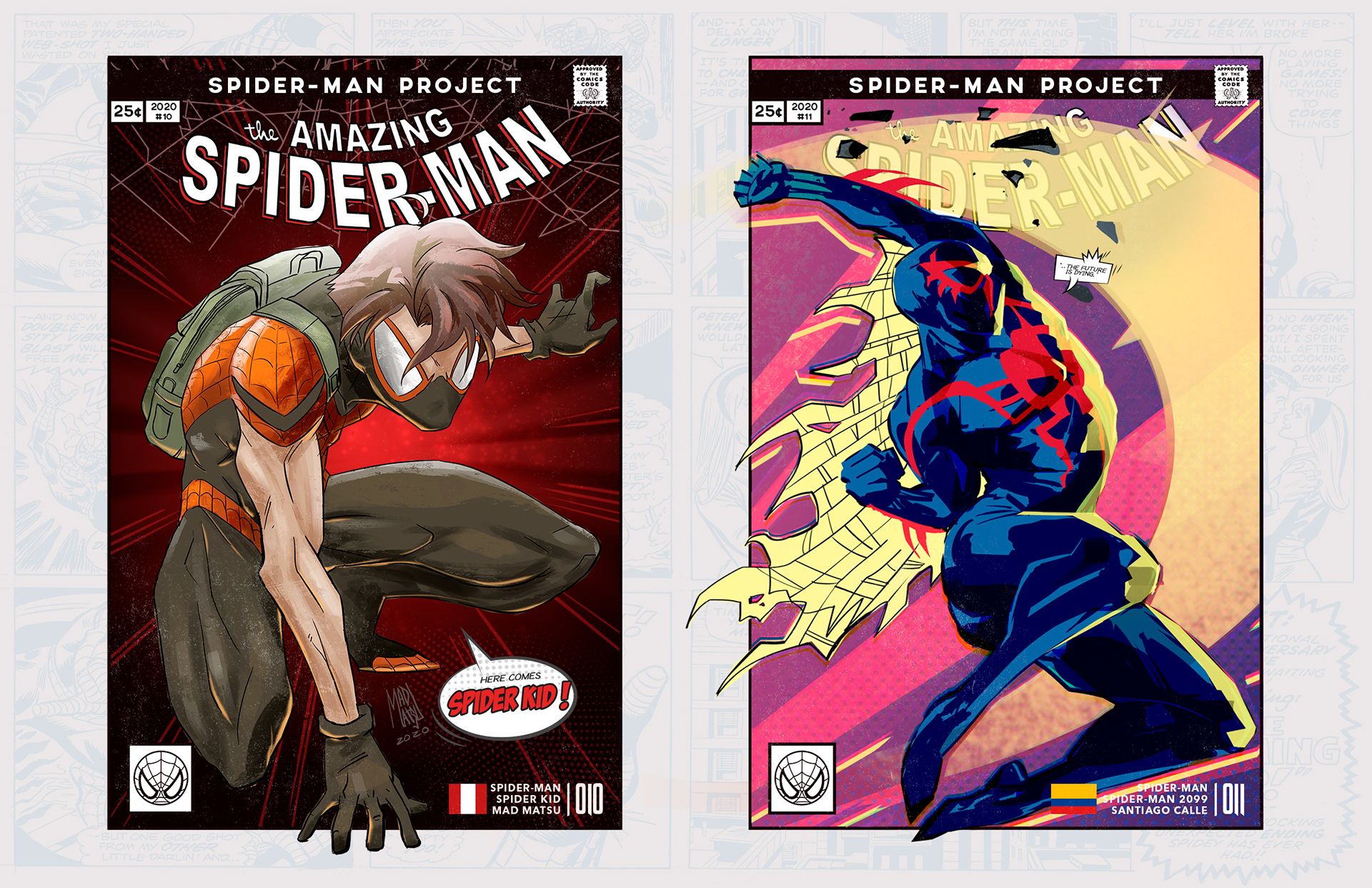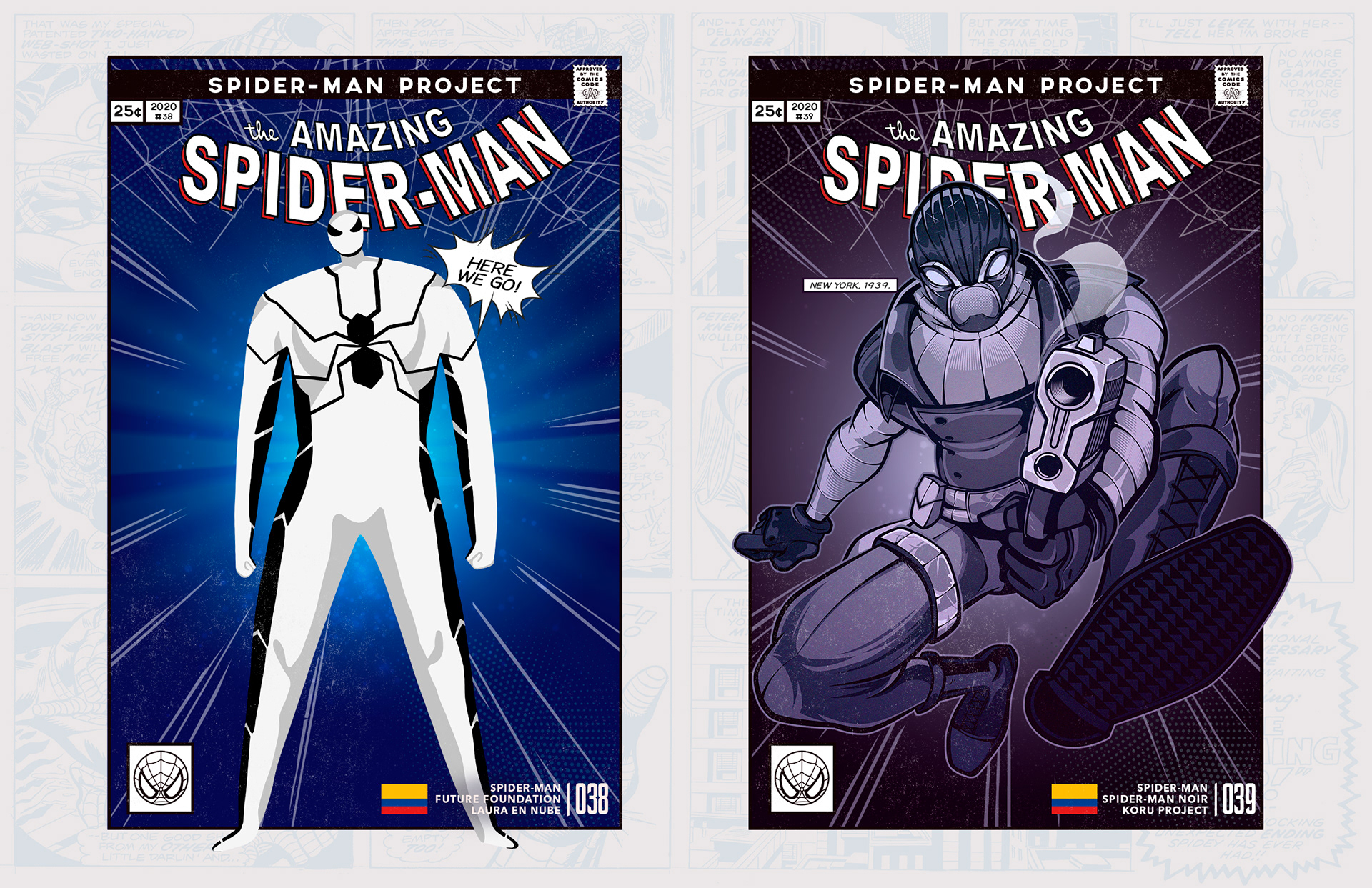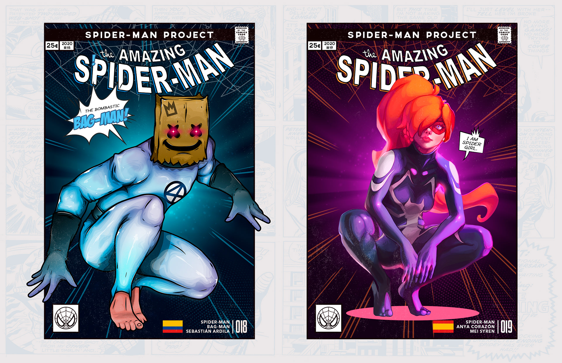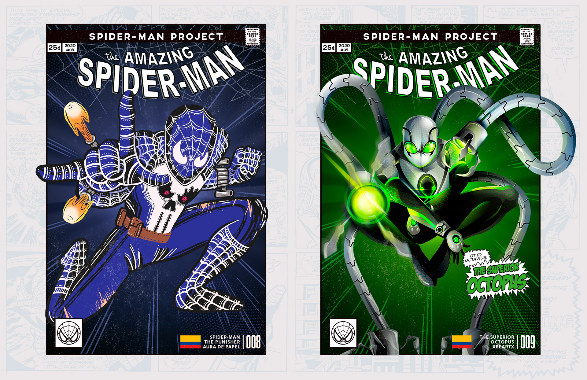 Spider-man is undoubtedly one of the most successful characters in Marvel's long list of superheroes. To celebrate his 58th anniversary and his upcoming 850th comic, I decided to bring together 46 illustrators from 11 countries to create a collaborative project with different versions of his friend and neighbor Spider-Man over the years. Enjoy! -------------------------------------------------------------------------------------- Spider-man es, sin duda, uno de los personajes más exitosos de toda la larga lista de superhéroes que tiene Marvel. Para celebrar su aniversario #58 y su próximo cómic #850, decidí juntar a 46 ilustradores de 11 países para crear un proyecto colaborativo con las diferentes versiones de su amigo y vecino Spider-Man a través de los años. ¡Disfruten! Jhony.