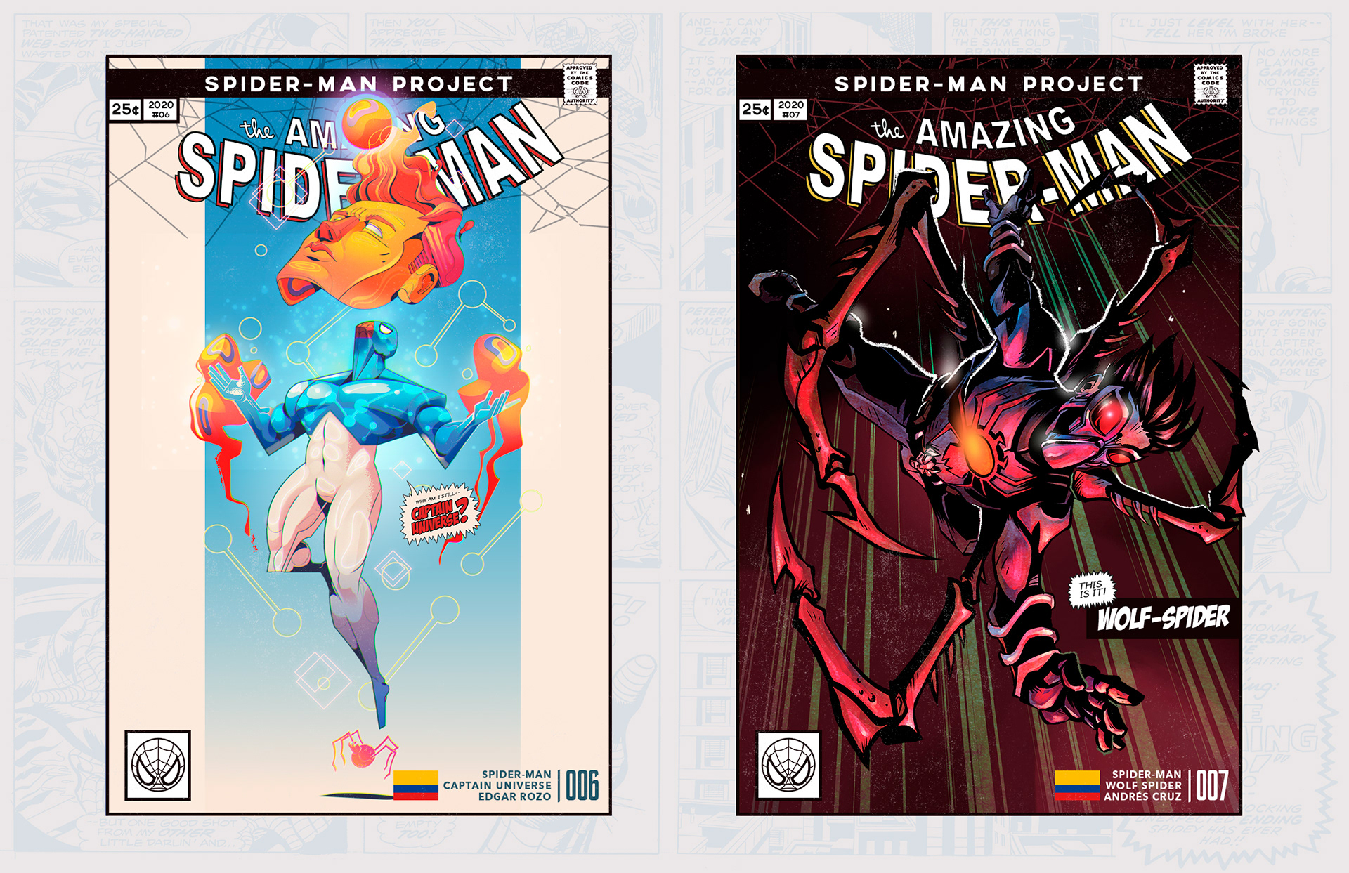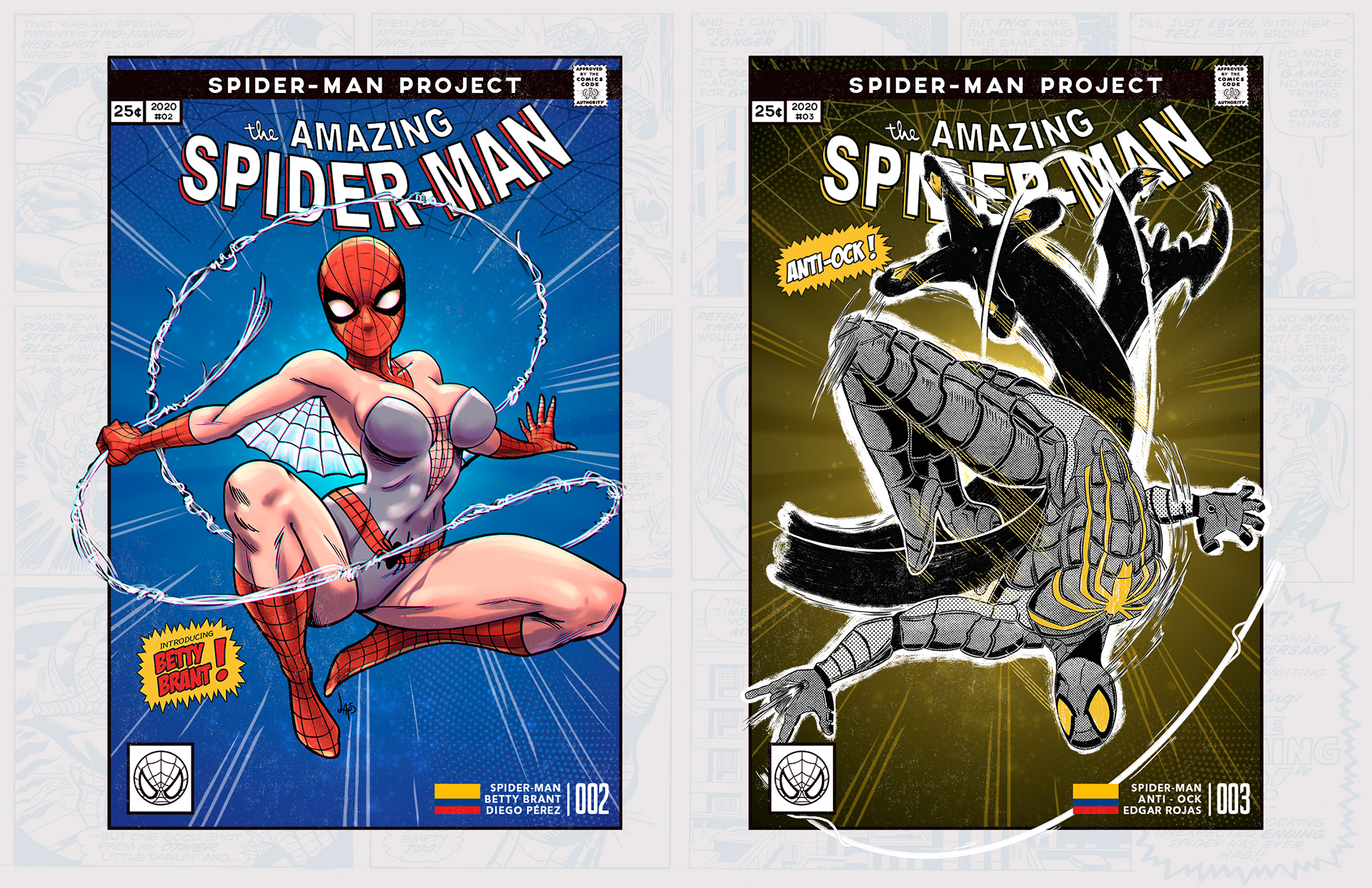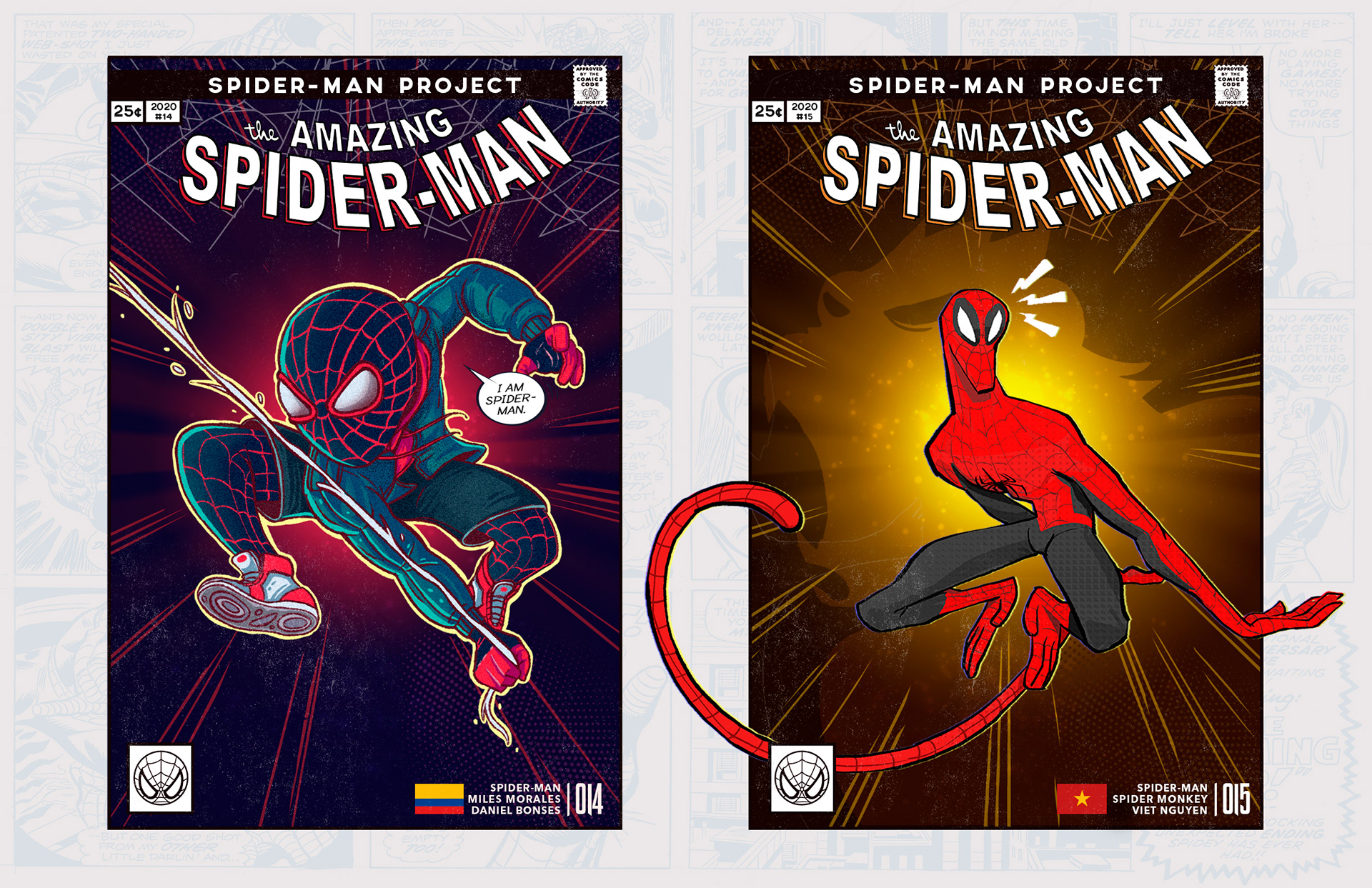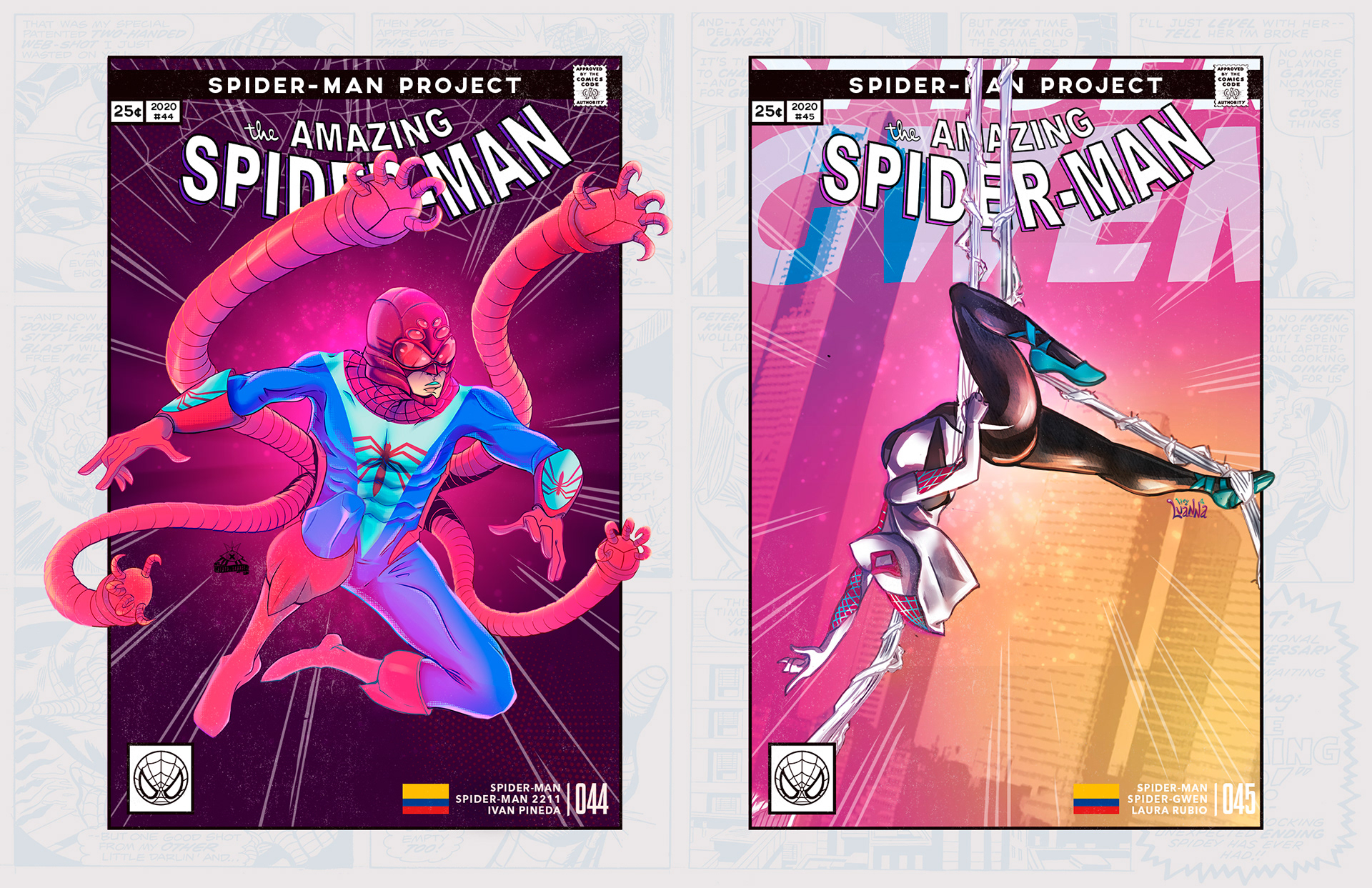 Spider-man is undoubtedly one of the most successful characters in Marvel's long list of superheroes. To celebrate his 58th anniversary and his upcoming 850th comic, I decided to bring together 46 illustrators from 11 countries to create a collaborative project with different versions of his friend and neighbor Spider-Man over the years. Enjoy! -------------------------------------------------------------------------------------- Spider-man es, sin duda, uno de los personajes más exitosos de toda la larga lista de superhéroes que tiene Marvel. Para celebrar su aniversario #58 y su próximo cómic #850, decidí juntar a 46 ilustradores de 11 países para crear un proyecto colaborativo con las diferentes versiones de su amigo y vecino Spider-Man a través de los años. ¡Disfruten! Jhony.