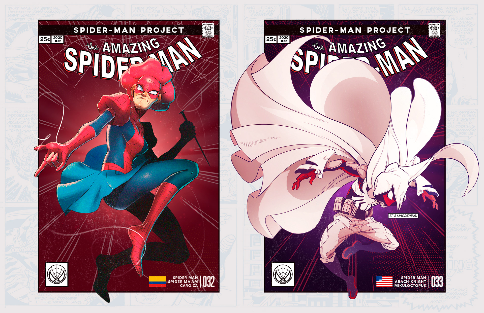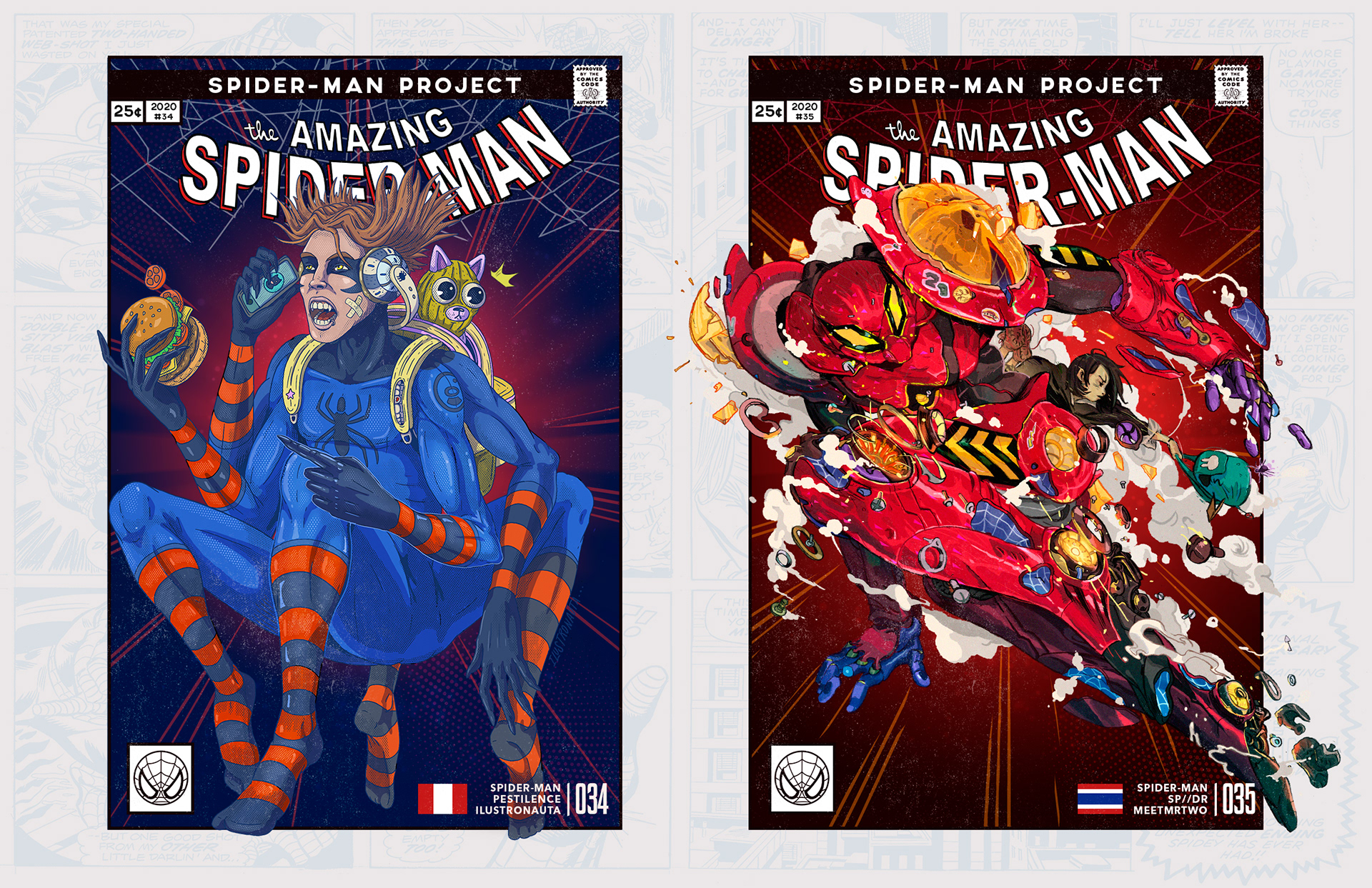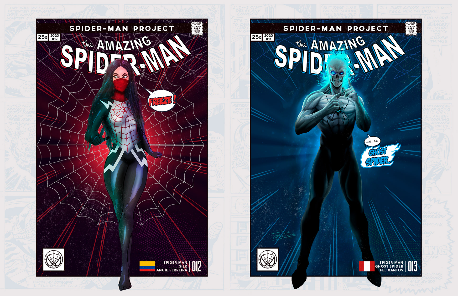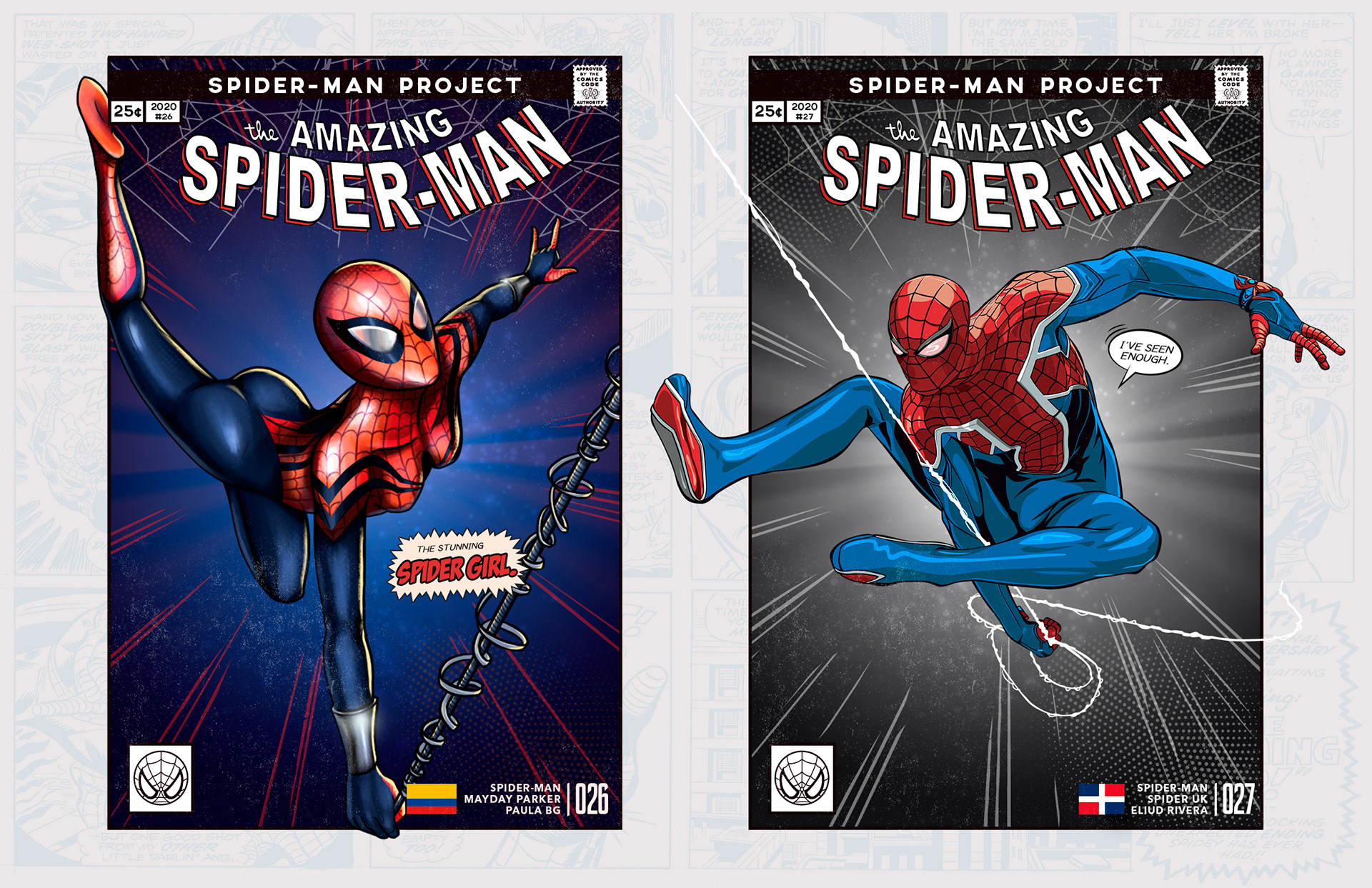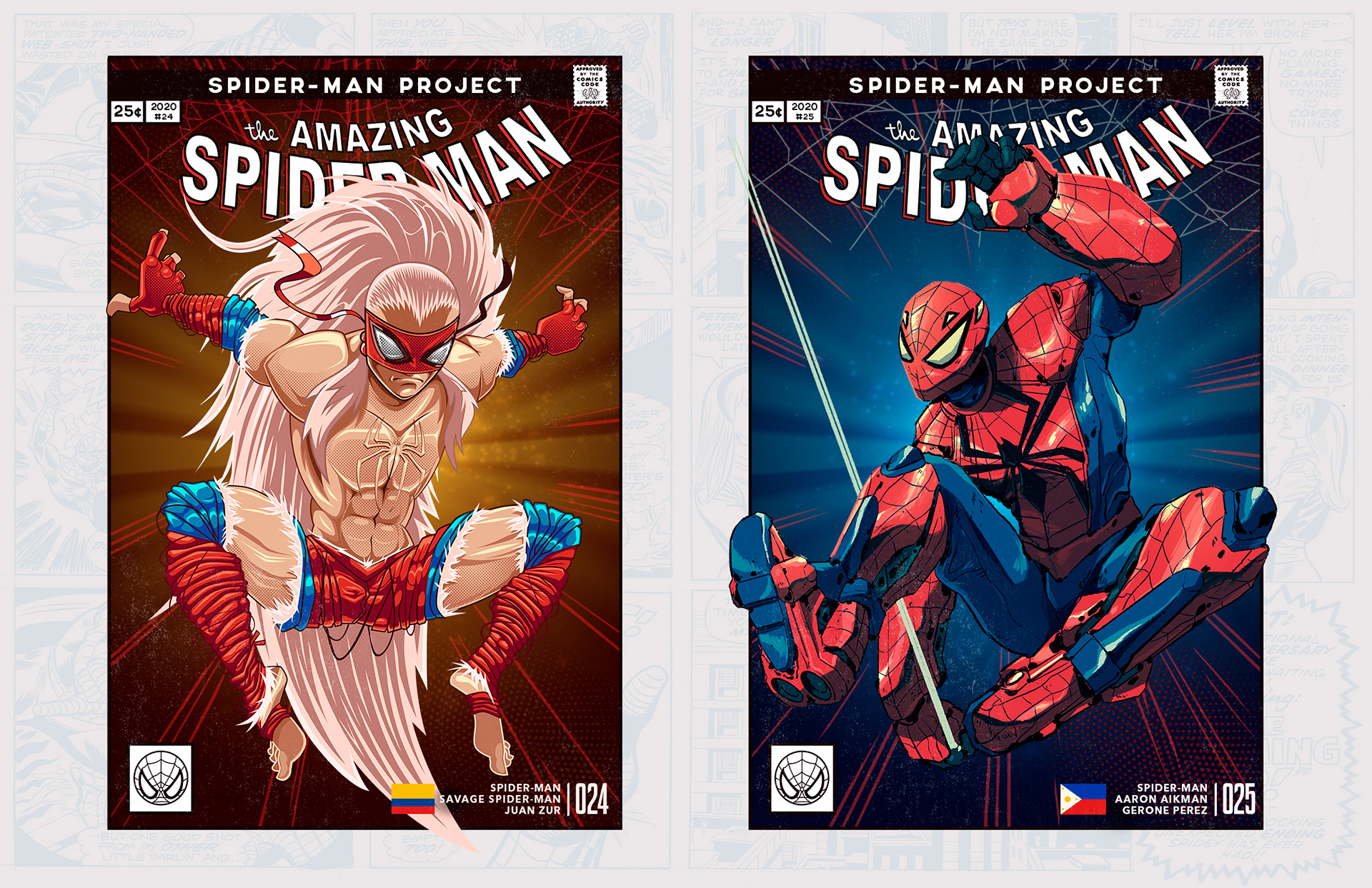 Spider-man is undoubtedly one of the most successful characters in Marvel's long list of superheroes. To celebrate his 58th anniversary and his upcoming 850th comic, I decided to bring together 46 illustrators from 11 countries to create a collaborative project with different versions of his friend and neighbor Spider-Man over the years. Enjoy! -------------------------------------------------------------------------------------- Spider-man es, sin duda, uno de los personajes más exitosos de toda la larga lista de superhéroes que tiene Marvel. Para celebrar su aniversario #58 y su próximo cómic #850, decidí juntar a 46 ilustradores de 11 países para crear un proyecto colaborativo con las diferentes versiones de su amigo y vecino Spider-Man a través de los años. ¡Disfruten! Jhony.